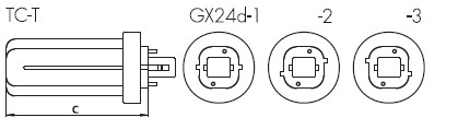 TC-T Трехканальная компактная лампа со встроенным стартером и выносным ПРА |